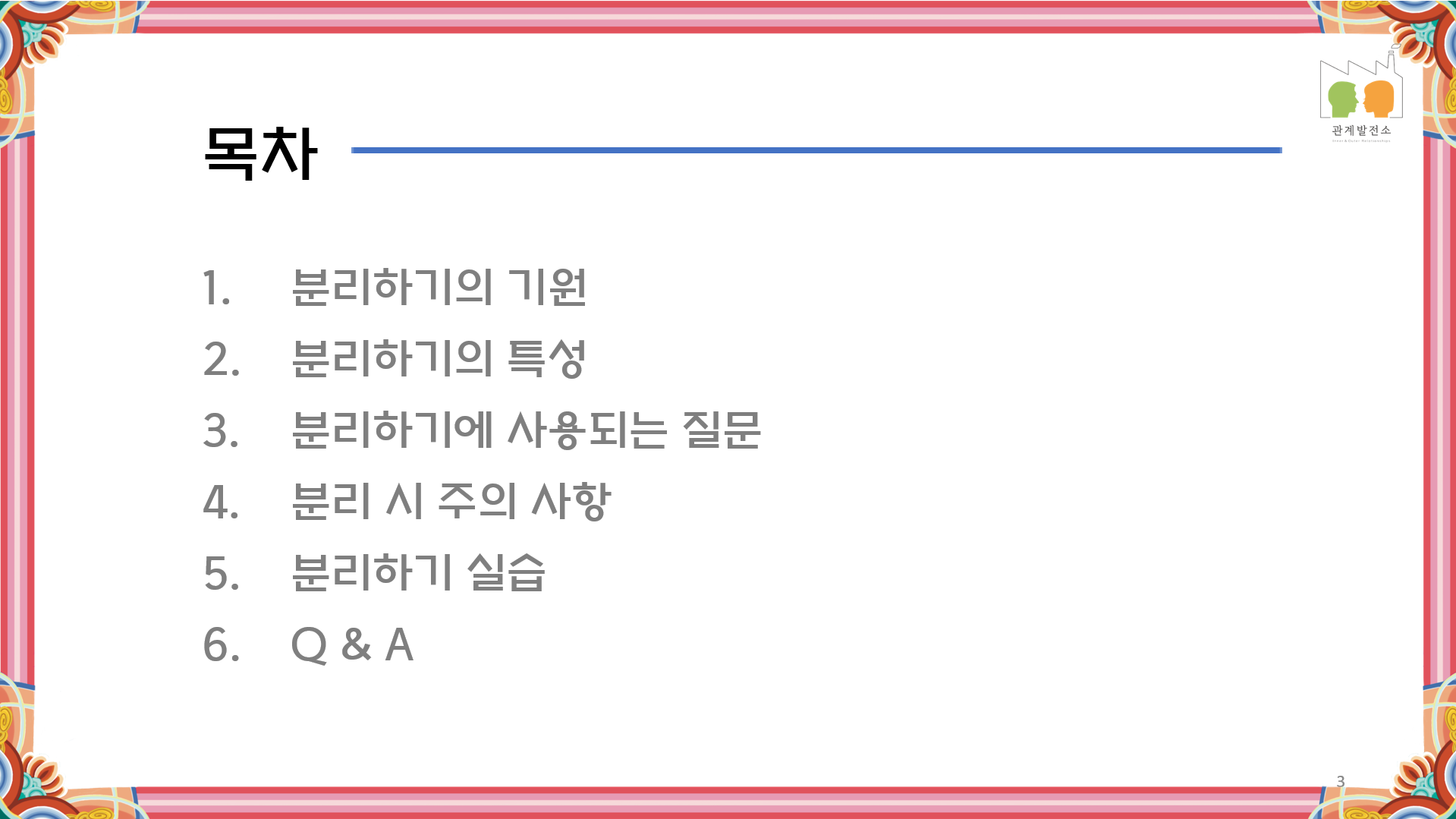 분리하기에 대한 이해를 높이고 실습을 통해 분리하기의 효과를 경험할 수 있는 좋은 기회가 될 것입니다.