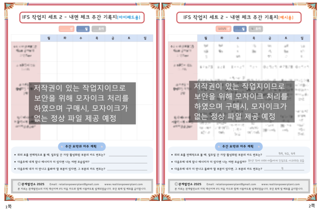 < 아이패드용 내면 체크 주간 기록지 이미지 >