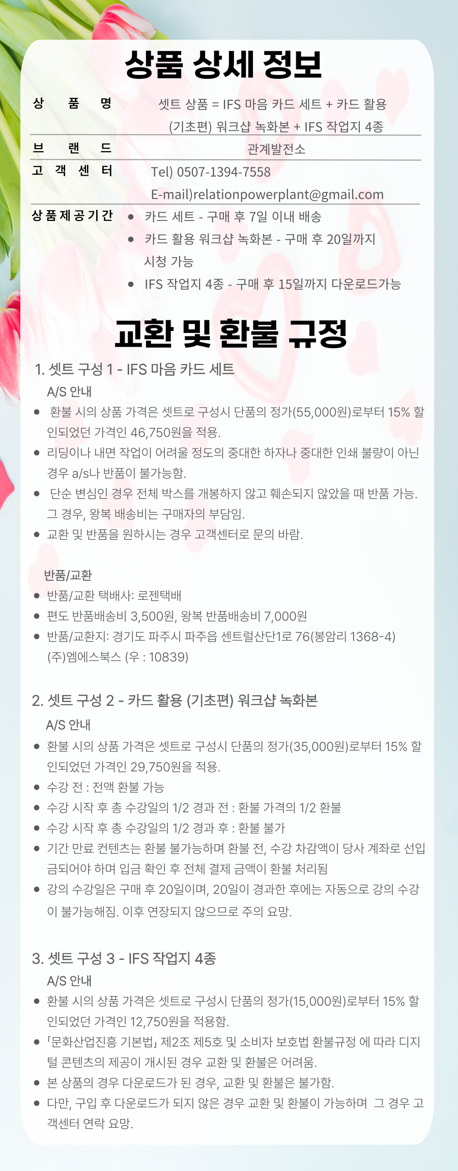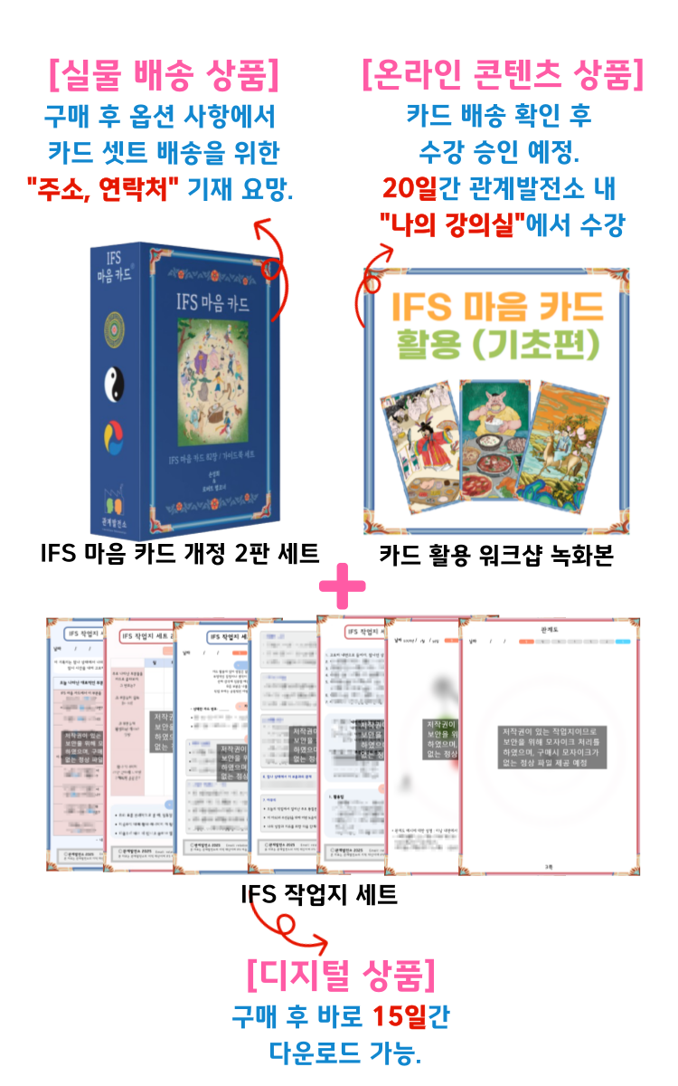 간편결제 가능셋트 상품 = IFS 마음 카드 개정 2판 세트 + 카드 활용 (기초편) 워크샵 녹화본 + IFS 작업지 4종
