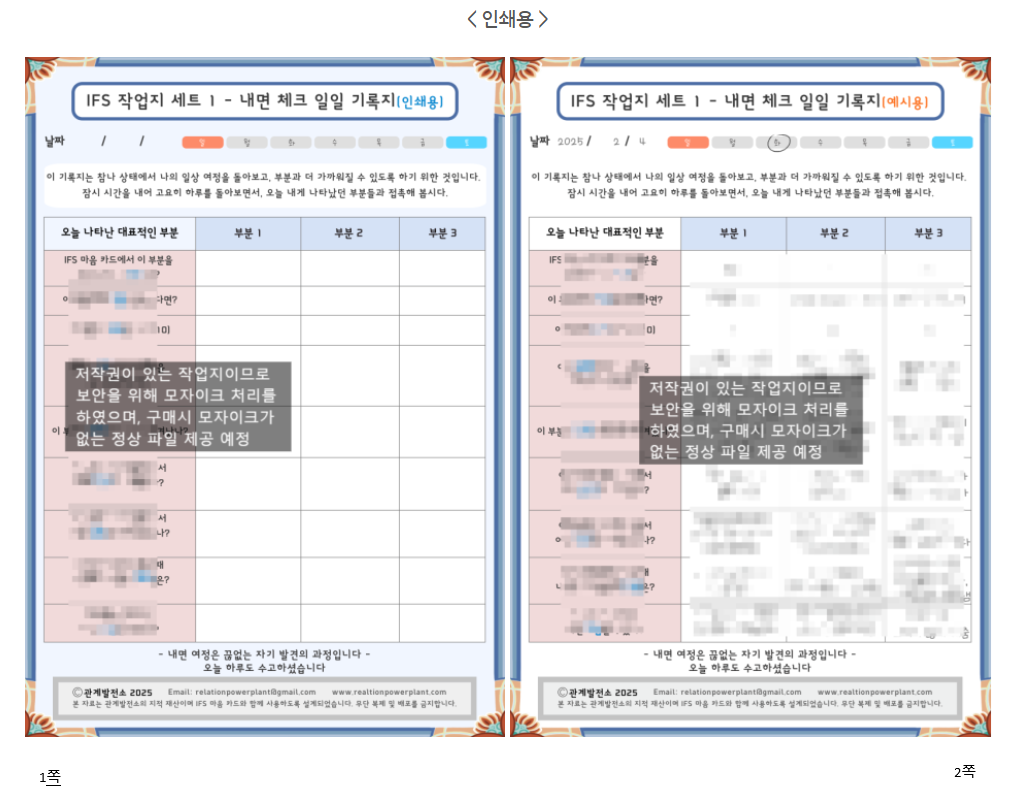 인쇄용 (PDF 파일, 총 4장) : 빈칸에 기록할 수 있는 2쪽 + 작성 예시가 적혀 참고할 수 있는 2쪽으로 구성