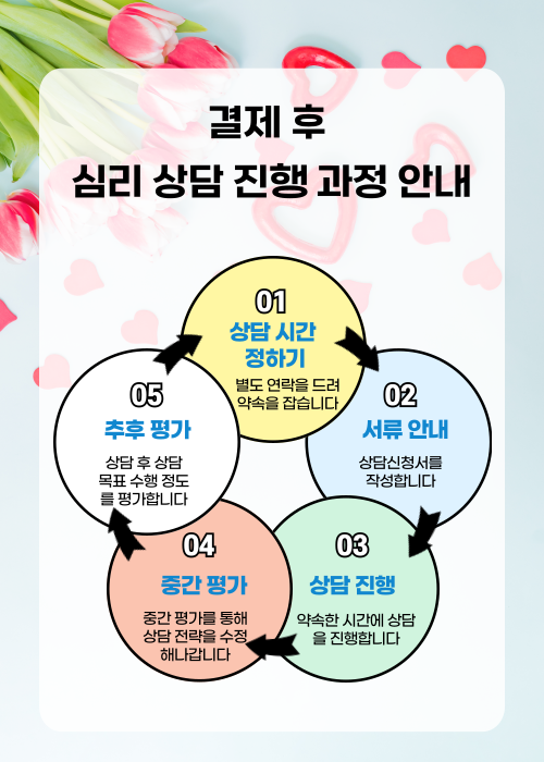 < 신규 상담 대기 안내 > 현재 상담 예약이 많아 신규 상담은 "결제 후 대기 접수" 로만 가능합니다. 결제 후 곧바로 상담이 진행되지 않습니다. 기존 내담자 상담이 종결되는 대로, 순차적으로 상담 가능 시점에 개별 안내 드릴 예정입니다. 상담 대기 상태에서 장기간 대기가 불편하실 경우, 언제든 환불이 가능합니다. 관심에 감사드리며 너른 양해 부탁드립니다. |
