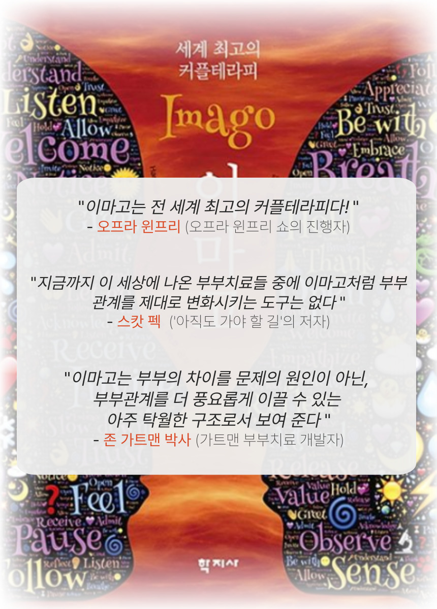 첫째, 부부 각자가 어린 시절 부모와의 관계경험으로 형성된 이마고를 발견하도록 도와주고,