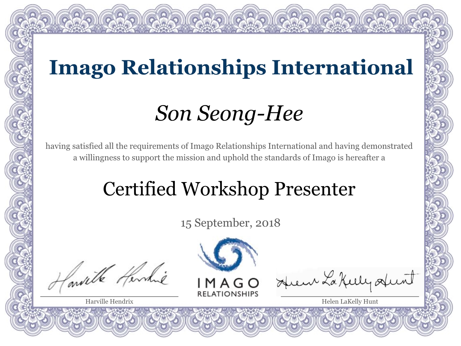 2018년 국제 공인 이마고 부부워크샵 리더 자격 취득