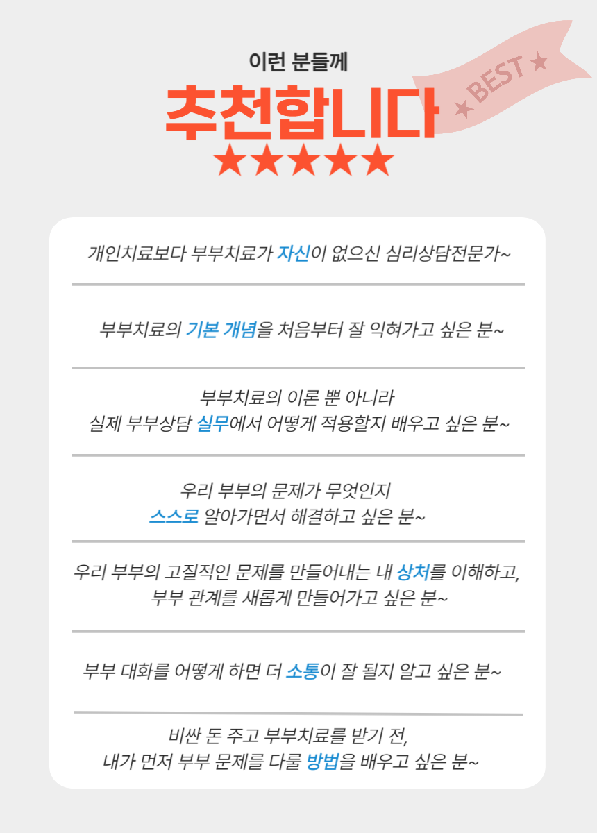 임상 경험을 토대로 한 실질적인 부부 상담 노하우 공개