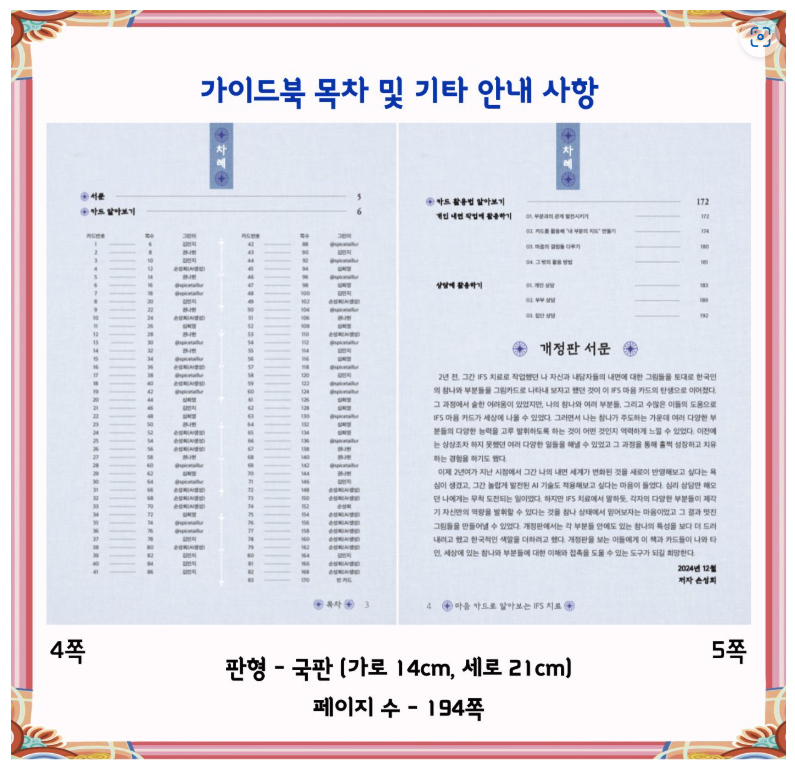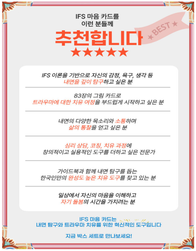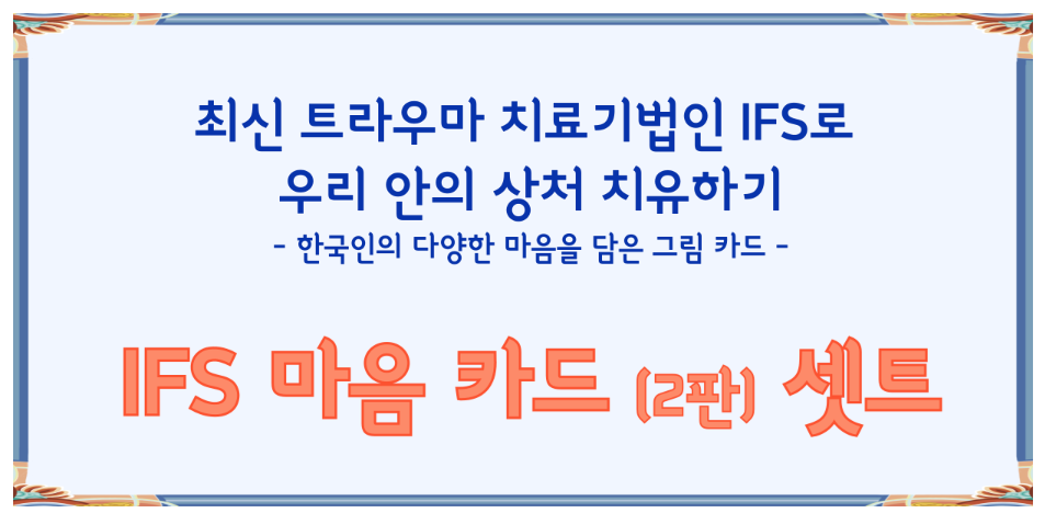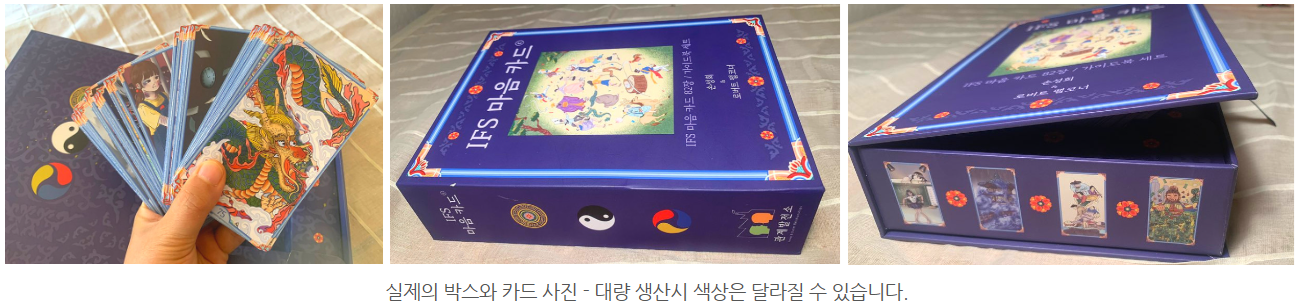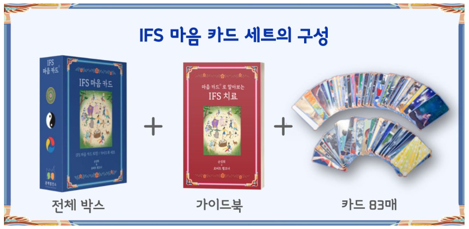 그러한 IFS치료를 쉽게 이해하고 적용할 수 있는 IFS 마음 카드와 가이드북, 박스 세트입니다.